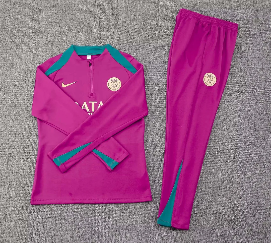 • 2024/2025 Psg Paris Saint-Germain Half-Pull Training Suit Rose Set 1:1 Thai Quality